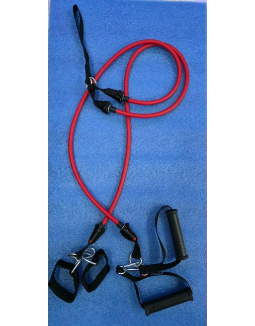 CUBREN ABSOLUTAMENTE TODOS LOS POSIBLES EJERCICIOS DE TREN SUPERIOR E INFERIOR BANDA ELASTICA DOBLE CON MANIJAS EXTRA COMODAS , ARGOLLAS DE HIERRO Y ANCLAJE , LO QUE FACILITA EL TRABAJO EN CUALQUIER SITIO YA QUE PUEDE ANCLARSE A UN POSTE ARBOL MASTIL O GANCHO.